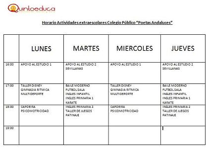 Puede consultar el horario de nuestras actividades en el Colegio Público "Poetas Andaluces".